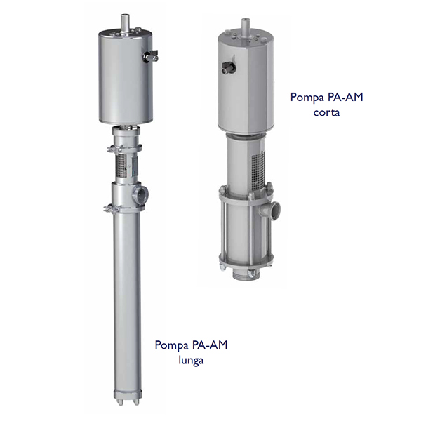 Bomba neumática con todas las partes en contacto con el producto en acero inoxidable AISI 316, superficies pulidas a espejo interna y externamente. Ejecución para sumergir el cilindro de bombeo directamente en los bidones y/o en los tanques. Estructura fácil de mantener para un sencillo y rápido desmontaje de la bomba. También disponible con carros para uso móvil o con abrazadera para el bloqueo directamente en el contenedor.